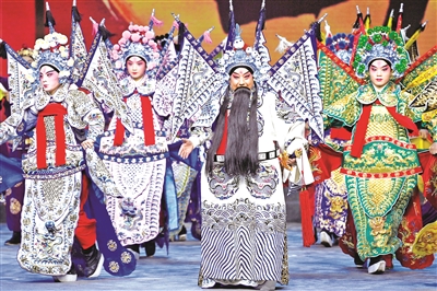11月1日,演员在第十届秦腔艺术节开幕式上表演秦腔传统戏《满江红》。