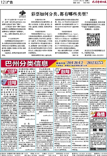 广告中心:2012012 2212616 发行中心:2212600 2022499 月价:24元 年价:288元 印刷:巴州日报印务有限责任公司 电话:2024204