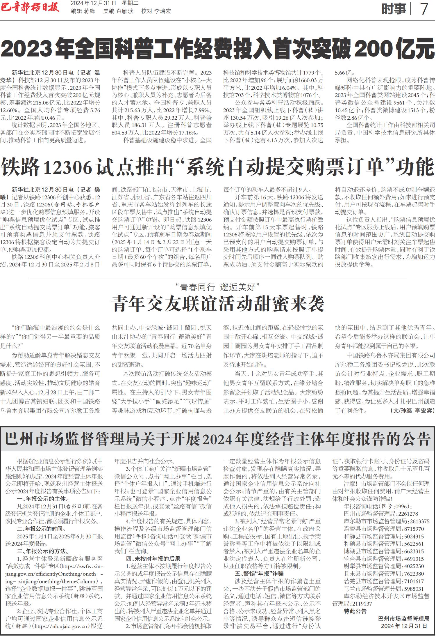 巴州市场监督管理局关于开展2024年度经营主体年度报告的公告