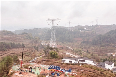 1月8日,“疆电入渝”工程哈密至重庆±800千伏特高压直流输电线路工程重庆段最后一场导线展放完毕,标志着该工程重庆段全线贯通。“疆电入渝”工程特高压直流输电线路起于新疆哈密,终于重庆渝北区,是重庆落地的第一条直流特高压工程,投资达286亿元,线路全长约2290千米,计划2025年6月双极低端投运,2025年12月双极高端投运。该工程投产后每年可向重庆输送电量超360亿千瓦时,助力重庆形成“一交一直”特高压输电新格局,构建水、火、风、光多元电力互济体系,有效增强重庆电网保供能力,为成渝地区双城经济圈发展提供强劲动能。