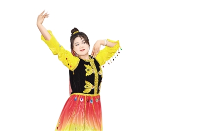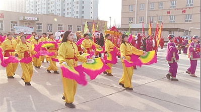 2月9日,库尔勒市萨依巴格街道梨香园社区居民,在元宵节庆祝活动中表演舞蹈。(本报记者 盛雪 摄)