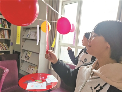 2月10日,库尔勒市建设街道上恰其社区举办“趣味闹元宵 关爱暖童心”活动,孩子们正在猜灯谜。(本报记者 薛兵 摄)