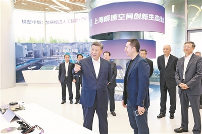 “模速空间”是上海市打造的人工智能大模型专业孵化和加速平台,已入驻企业100余家。习近平来到这里,通过视频短片了解上海市人工智能产业发展情况,察看重点孵化企业的大模型产品展示,听取相关技术研发和企业生产经营介绍。习近平对上海积极发展人工智能取得的实效给予肯定。他指出,人工智能技术加速迭代,正迎来爆发式发展,上海要总结好以大模型产业生态体系孵化人工智能产业等成功经验,加大探索力度,力争在人工智能发展和治理各方面走在前列,产生示范效应。