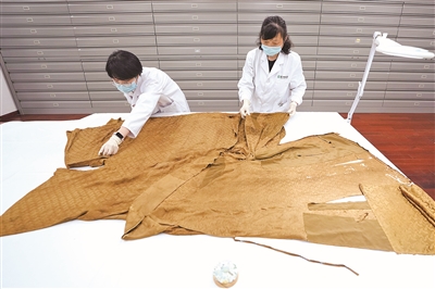 历经岁月侵蚀,丝绸文物常出现残缺、糟朽、脆化、褪色等问题。修复师的工作就像给文物看病。一名合格的丝绸“医生”需要将现代科技与传统技艺结合,让文物重焕生机。目前,陈琰璐所在团队每年需修复十余件织绣文物。
