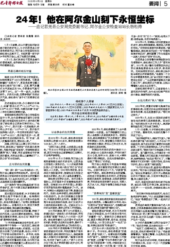 5月1日凌晨,在从内蒙古临河驶往库尔勒的救护车上,52岁的若羌县公安局党委副书记、阿尔金公安检查站站长杨松涛永远离开了。未能再看一眼守护24年的阿尔金山,成了他最后的遗憾。