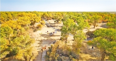 近日,游客在塔里木胡杨林公园内游玩。本报记者 薛兵 摄