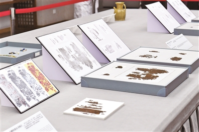 这是10月13日在湖南省博物馆拍摄的部分长沙子弹库战国帛书。