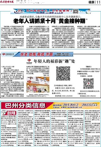乌鲁木齐市疾病预防控制中心(市卫生监督所)免疫规划科专家提示,流感季提前,10月是保护老年人健康的“关键窗口期”,建议家属及时陪同符合条件的老年人接种流感疫苗。