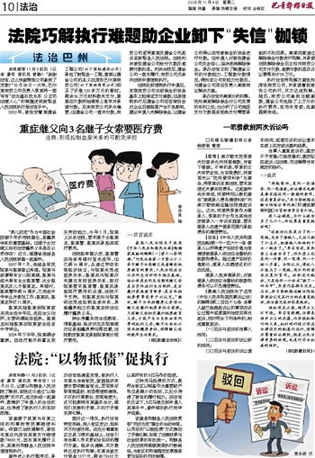 本报和静11月3日讯 (记者 廖军 通讯员 李宗会) 10月30日,记者从和静县人民法院了解到,该院近日通过“以物抵债”的方式,成功执结一起案件,既维护了申请人的合法权益,也考虑了被执行人的实际困难。