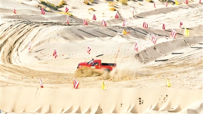 参赛选手在沙漠越野赛道上驾车驰骋。通讯员 年磊 摄