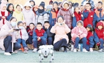 11月28日,在库尔勒市第八中学举行的第十五届科技节闭幕式上,学生们在观看表演。本届科技节以“红色基因润童心 科技创新向未来”为主题,设置无人机表演、机器狗表演等科技互动展示和科学实验秀、科技成果展等环节,为广大师生打造了一场融合红色教育与科技体验的特色活动。文/本报记者 袁海军 图/通讯员 喻改改