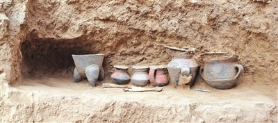 这是陕西榆林石峁遗址墓葬M13壁龛器物(资料照片)。