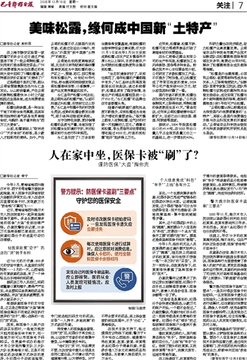 警方提示防医保卡盗刷“三要点”:一是及时修改医保卡初始密码,一旦发现医保卡遗失应立即挂失;二是每次使用医保卡进行结算时,应注意核对消费信息,确保人卡相符、使用金额和医保卡余额相符;三是发现自己的医保卡被盗刷,应立即报警。医药从业人员发现可疑情况,应及时上报。
