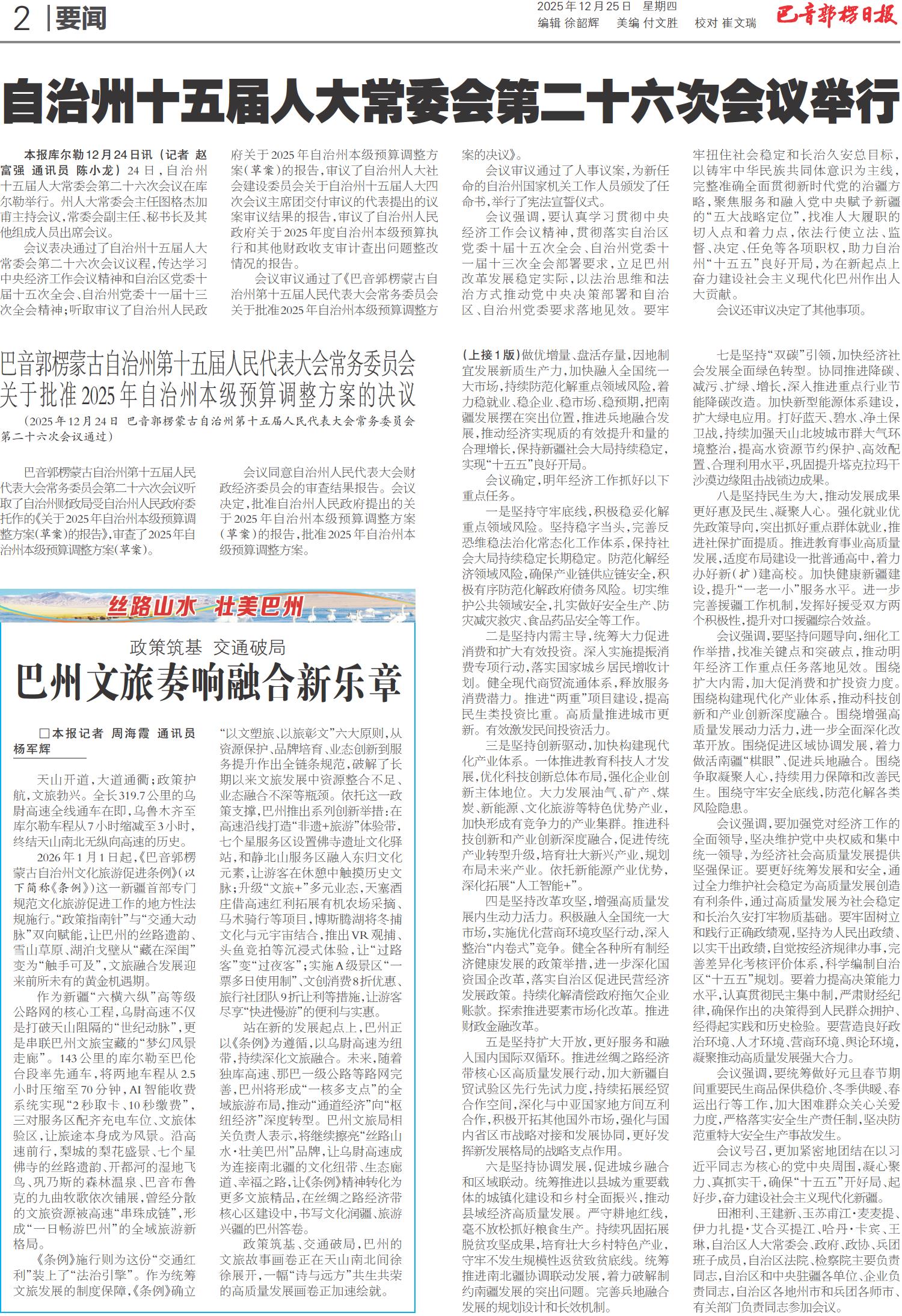 巴音郭楞蒙古自治州第十五届人民代表大会常务委员会关于批准2025年自治州本级预算调整方案的决议