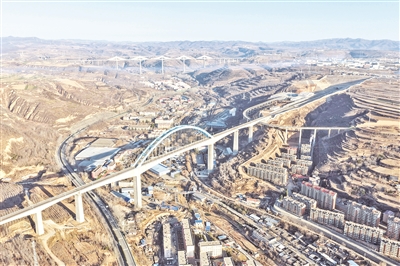 12月25日拍摄的西延高铁王家河特大桥(无人机照片)。西安至延安高速铁路关键控制性工程王家河特大桥位于陕西省铜川市王益区,是西延高铁全线跨度最大、高度最高的桥梁。桥梁全长1066米,其主跨采用248米连续刚构加拱组合结构,桥面距沟底高达105米,是国内高速铁路无砟轨道桥梁中同类型结构的跨度与高度双项纪录保持者,对保障西延高铁全线贯通具有决定性意义。新华社记者 邢广利 摄