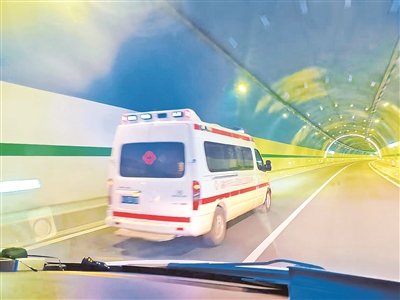 12月28日凌晨,在天山胜利隧道内,另一辆“120”急救车正在驶向乌鲁木齐。本报记者 陈彦强 摄