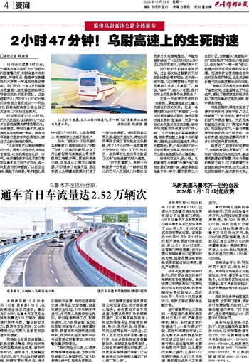 如今,飞驰在26日刚开通的乌尉高速上,蒋旭东的内心“平静了许多”。这条历时数年、攻克了天山断裂带与高寒冻土等世界级施工难题才得以贯通的高速公路,及其核心工程天山隧道群,不仅凿穿了地理天堑,更在实质上为南疆各族群众打通了一条“生命通道”。通车的效益立竿见影:就在开通当天,蒋旭东的同事张志斌已首次经由这条新路,用了3个小时将一名危重病人安全送达;而27日下午,他的另一名同事刘仕龙也再次验证了这条“生命通道”的惊人速度。