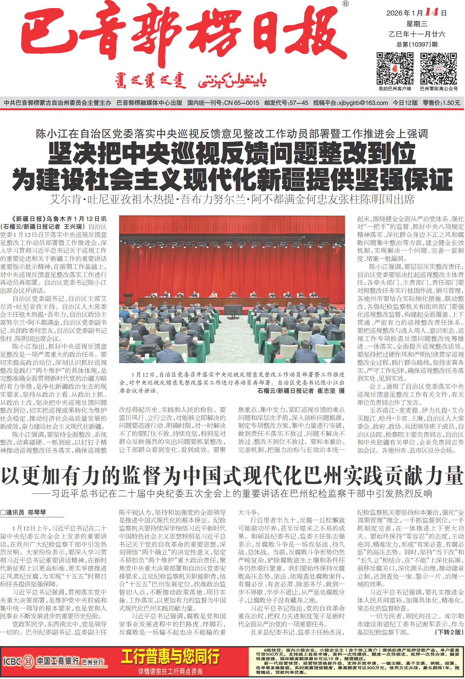 以更加有力的监督为中国式现代化巴州实践贡献力量