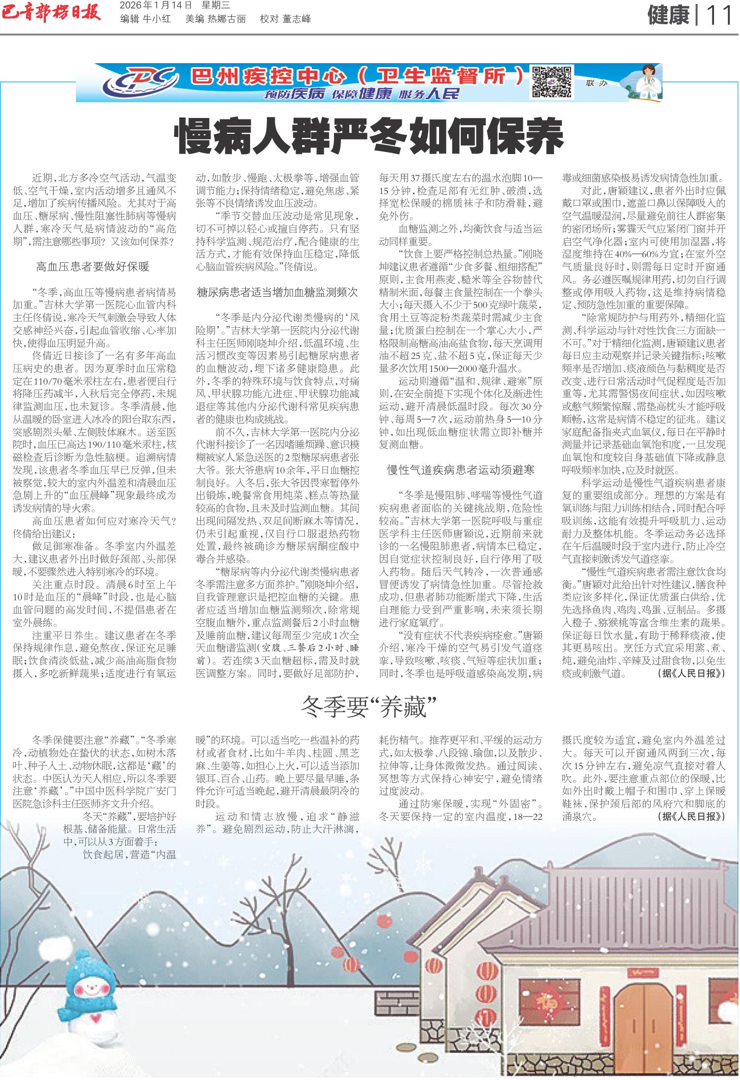 慢病人群严冬如何保养