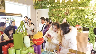 一月十九日,参加自治区第一届西部计划志愿者职业规划大赛巴州初赛的选手在库尔勒香梨旗舰店参观体验。通讯员 王晨宇 摄
