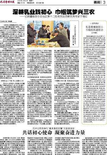“乳业兴,则农牧兴;农牧富,则边疆稳。”于瑞红始终牢记“心系三农、助力振兴”的初心,企业发展与乡村振兴同频共振,以一杯好奶为纽带,打通从田间到餐桌的全产业链,让产业红利惠及万千农牧民,为巴州农业高质量发展注入强劲动力。