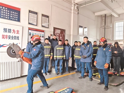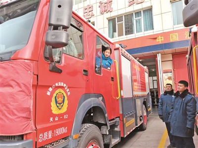 随后,众人在消防车前合影留念,红色战车与灿烂笑脸相映成趣,定格成冬日里最亮丽的画面。