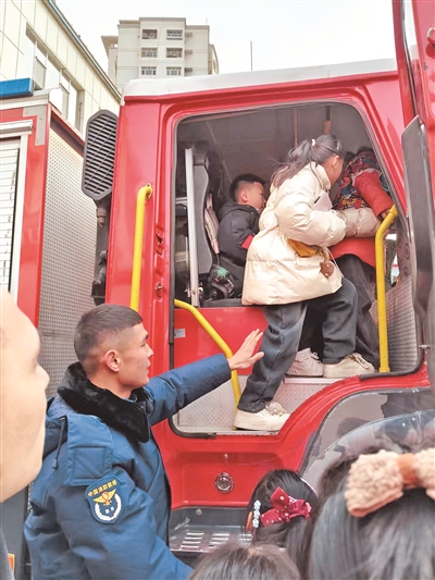 更令人兴奋的是乘坐消防车。小记者们在消防指战员的引导下有序登车,近距离接触车内装备,感受这份职业的神圣。