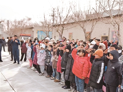 活动尾声,全体小记者在牛海亮的带领下整齐列队,向消防指战员致以最诚挚的敬意,大家齐声喊:“消防员叔叔,你们辛苦了!”牛海亮带领消防指战员们庄重回礼,双向的敬意在冬日营区里传递。