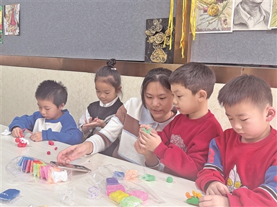 老师在指导孩子用彩泥制作小动物。通讯员 给占努尔·艾尔买江 摄