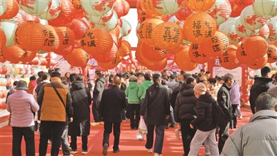 春节假期在库尔勒逛庙会的游客络绎不绝。通讯员 迪力亚尔·艾尼 摄
