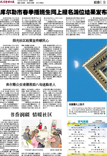 本报库尔勒2月25日讯 (记者 袁海军) 24日,库尔勒市教育局在微信公众号“梨城教育”上发布《库尔勒市2026年春季插班生网上报名派位结果发布公告》。