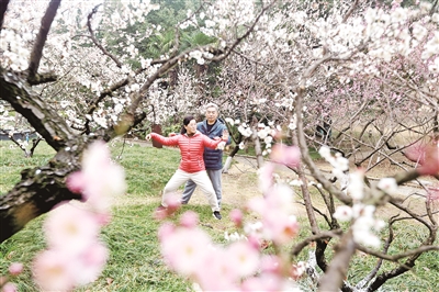 2月27日,市民在江苏省连云港市连云区的公园中打拳。