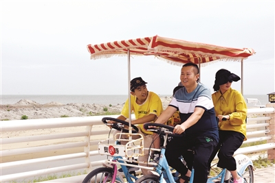 8月7日,游客在博湖县博斯腾湖景区观光旅游。