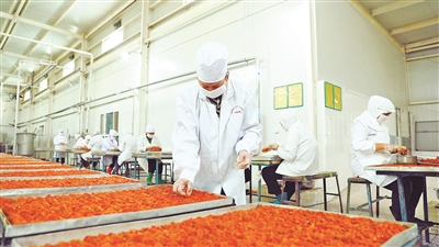 随着冬季的到来,果脯、干果、果醋等精深加工农产品进入生产旺季。近日,在轮台县杏宝果品工贸有限公司的生产车间内,全自动化生产线高速运转,工作人员在有序地生产加工白杏产品。