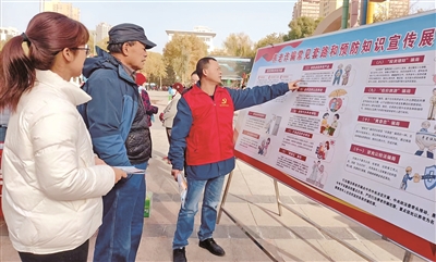 11月16日,库尔勒市萨依巴格街道楼兰社区与银行系统在人民广场开展防范电信诈骗宣传活动,筑牢防范电信诈骗的安全防线。 本报记者 陈剑飞 摄