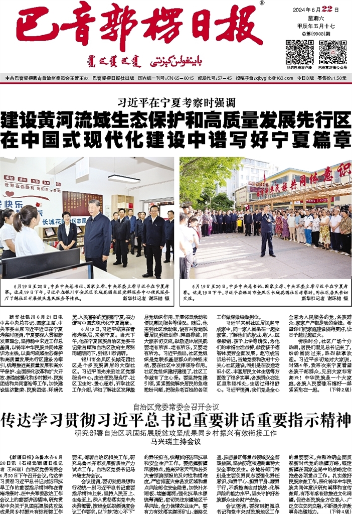 - 建设黄河流域生态保护和高质量发展先行区 在中国式现代化建设中谱写好宁夏篇章 新华社银川6月21日电 中共中央总书记、国家主席、中央军委主席习近平近日在宁夏考察时强调,宁夏要深入贯彻新发展理念,坚持稳中求进工作总基调,以铸牢中华民族共同体意识为主线,以黄河流域生态保护和高