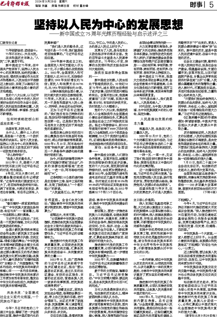 □新华社记者 75年砥砺奋进、团结奋斗; 75年不忘初心、矢志为民。 在共和国历史丰碑上,“人民”二字,重若千钧。 新中国成立75年来,在中国共产党领导下,坚持以人民为中心