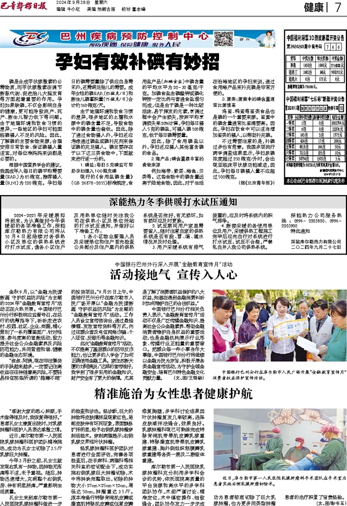 - 活动接地气 宣传入人心 金秋9月,以“金融为民谱新篇 守护权益防风险”为主题的2024年“金融教育宣传月”活动正在火热开展。中国银行巴州分行积极响应监管号召,在总行的统筹指导下,纷纷走进农村、校园、社区、企业、商圈,精心
