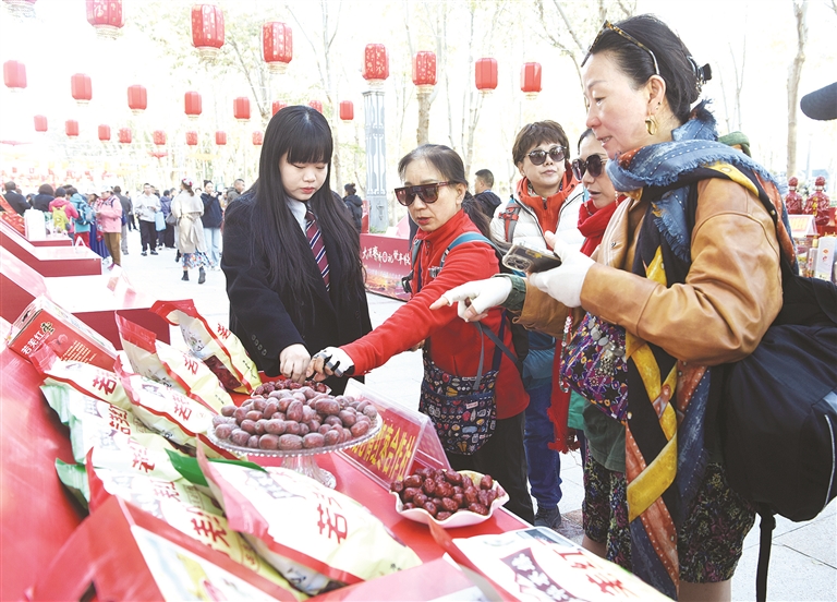10月26日是2024新疆巴州若羌且末红枣节。当日,在红枣及红枣产品展示品鉴区,各种红枣和红枣深加工产品让游客目不暇接。游客在品尝的同时,纷纷选购各种红枣及红枣产品。