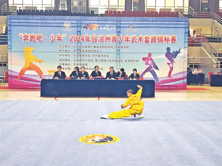 本报库尔勒10月27日讯 (记者 陈城市) 25日,“奔跑吧·少年”2024年自治州青少年武术套路锦标赛在巴音体育馆开赛。
