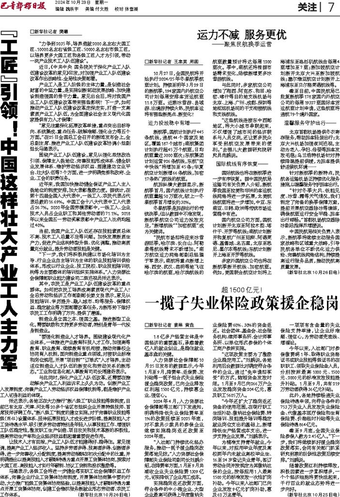 - 一揽子失业保险政策援企稳岗 □新华社记者 姜琳 黄垚 1.8亿多户经营主体是中国经济的重要基石,承载着数亿人的就业创业,是稳住就业基本盘的关键。 人力资源社会保障部10月25日发布的数据显示,今年1月至9月,降费