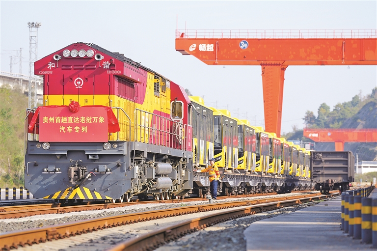 当日,一列装载28辆“贵州造”新能源客车的出口专列,从贵阳国际陆港都拉营站开出,将经由云南磨憨口岸出境前往老挝万象。这是中老铁路开通以来,贵州首次开行到老挝的汽车出口运输专列。
