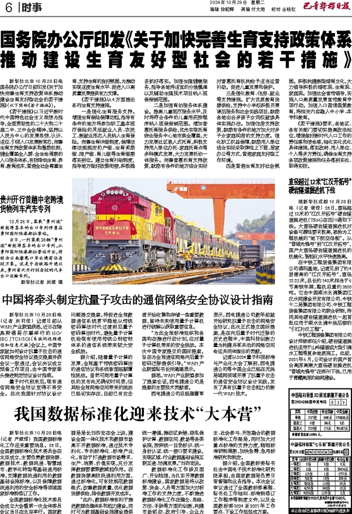 - 我国数据标准化迎来技术“大本营” 新华社北京10月28日电(记者 严赋憬) 我国数据标准化工作迎来重要消息。28日,全国数据标准化技术委员会在北京成立,主要负责数据资源、数据技术、数据流通、智慧城市、数字化转型等基础通用标准,支撑