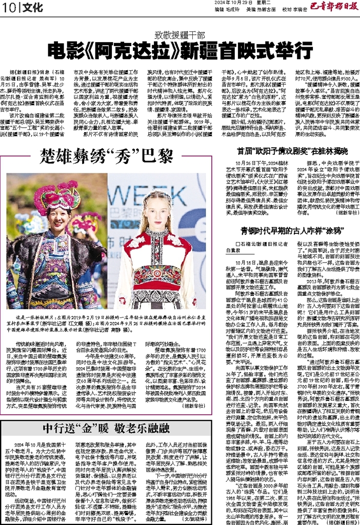 - 楚雄彝绣“秀”巴黎 传统韵味邂逅时尚风潮,民族瑰宝闪耀国际舞台。近日,来自中国云南的楚雄彝族服饰非遗时装展在法国巴黎举行,这项有着1700多年历史的国家级非遗再次亮相国际主流的时装舞台。 当天共有35套楚雄非遗时