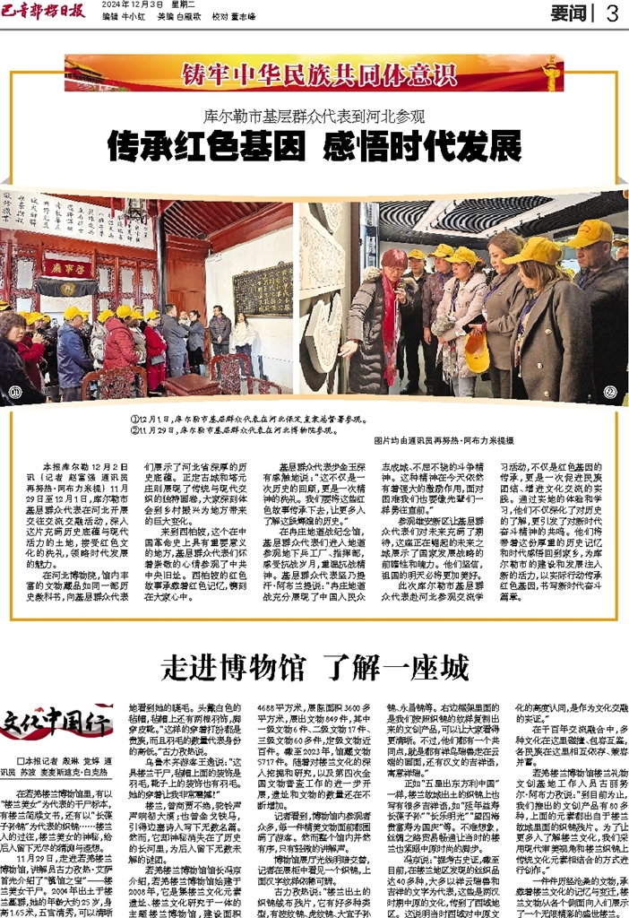 本报库尔勒12月2日讯 (记者 赵富强 通讯员 再努热·阿布力米提) 11月29日至12月1日,库尔勒市基层群众代表在河北开展交往交流交融活动,深入这片充满历史底蕴与现代活力的土地,接受红色文化的