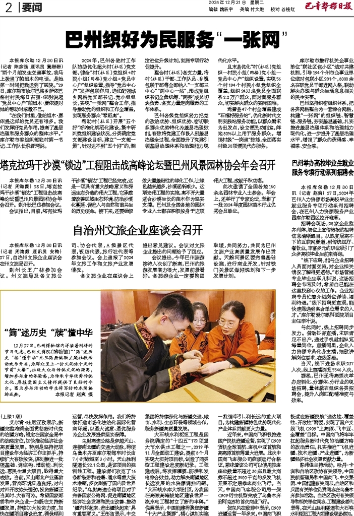 - “简”述历史 “牍”懂中华 12月27日,巴州博物馆内洋溢着别样的节日气息,巴州文博院(博物馆)“‘简’述历史 ‘牍’懂中华”元旦简册编联主题社教活动欢乐开启,为群众呈上一份文化味十足的节前“大餐”,拉近大众与传统文化的距离