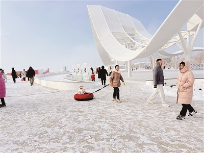 和硕县游客余兆龙开心地说:“今天带着家人过来游玩,我感觉景区变化很大,打卡拍照点应接不暇。我拍了很多照片,也体验了刺激的冰雪项目。”