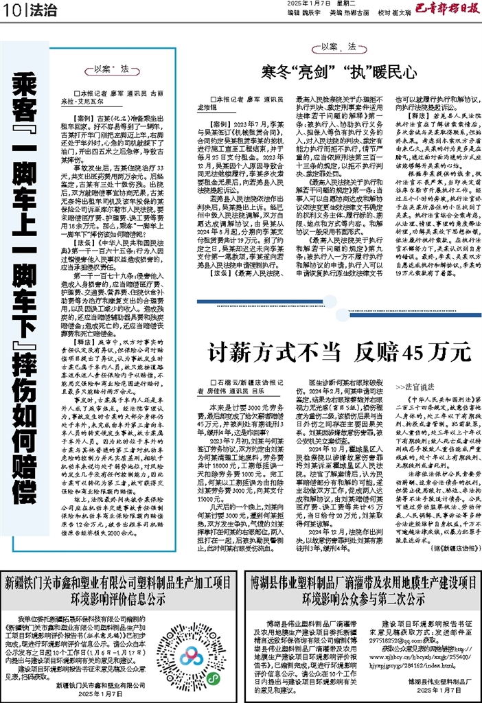 - 寒冬“亮剑” “执”暖民心 □本报记者 廖军 通讯员 龙浩锟 【案例】 2023年7月,李某与吴某签订《机械租赁合同》,合同约定吴某租赁李某的挖机进行施工直至工程结束,并于每月25日支付租金。2023年12月,吴