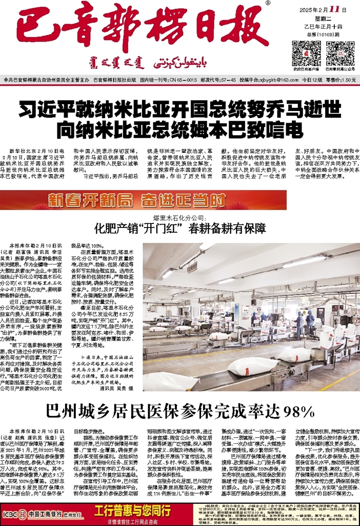 本报库尔勒2月10日讯(记者 赵富强 通讯员 李洁 吴贵) 新春伊始,春耕备耕迎来关键期。作为全疆唯一一家大颗粒尿素生产企业,中国石油独山子石化公司塔里木石化分公司(以下简称塔里木石化分公司)开足马力生产,奏响春耕备耕奋进曲。