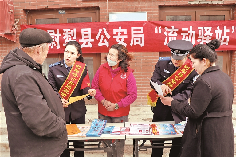 2月7日,尉犁县公安局兴平派出所在达西村开展宣传活动。连日来,该局各派出所深入辖区开展“流动驿站”政务服务下基层活动,把窗口业务搬到群众“家门口”,切实让政务服务多跑路,让群众少跑腿,打通便民服务“最后一公里”。通讯员 刘鹏 摄